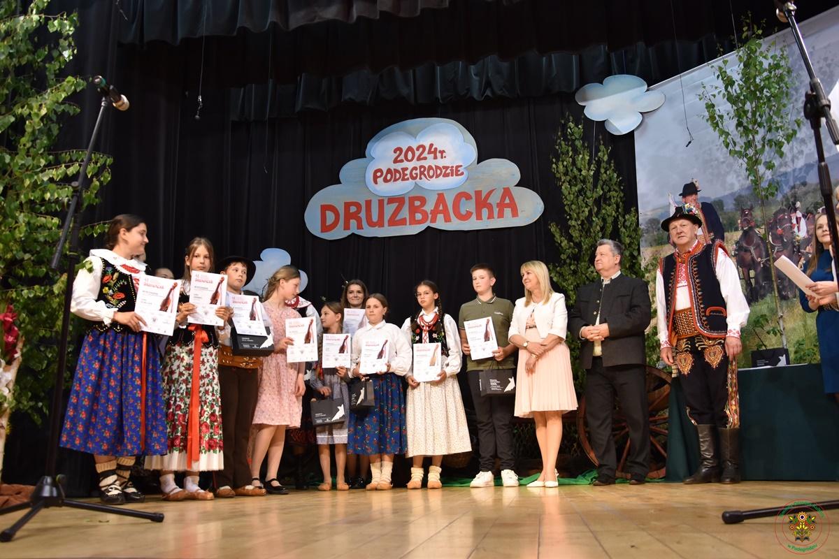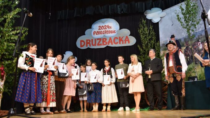 Podczas 41. Przeglądu w Konkursie: Muzyk, Instrumentalistów, Śpiewaków Ludowych i Drużbów Weselnych – DRUZBACKA, który odbył się w Podegrodziu w dniach od 8 do 12 maja 2024 roku – Nie zabrakło przedstawicieli z Gminnego Ośrodka Kultury w Nawojowej! W kategorii: śpiew solowy, wyróżnienie zdobyła:- Pani Beata Zaczek W kategorii: Konkurs grup śpiewaczych w kategorii dorosłych wyróżnienie ZR Nawojowiacy z Nawojowej, (grupa męska) skład: – Kazimierz Frączek – Grzegorz Korzym- Józef Turski- Marian Leśniak Podczas Druzbacki godnie się prezentowali się przedstawiciele Szkółki muzykowania ludowego: Kategoria młodzieżowa: /skrzypce/ soliści2 miejsce zdobyła- Anna Sieradzka- Zuzanna Wiktor3 miejsce zdobyła- Anna Janisz Kategoria dziecięca:/ skrzypce/soliści1 miejsce zdobyła- Weronika Wiktor2 miejsce zdobyła:- Aleksandra Fiut Wyróżnienie Kategoria dziecięca: skrzypce/ soliści- Dominika Południak. Nagrodę główną w postaci ,,Złotego Listka” otrzymał Pan Władysław Obrzut wraz z uczniami (Oliwier Góra, Dominik Warchoł, Kacper Szyszka.) / heligonka. Składamy serdeczne GRATULACJE !!! Co to jest Druzbacka? ,,DRUZBACKA to najstarszy i o największym zasięgu przegląd w regionie, który od wielu lat cieszy się ogromną popularnością. Jego początki sięgają roku 1980. Swym zasięgiem obejmuje regiony: Lachów Sądeckich, Lachów Limanowskich, Lachów Szczyrzyckich, Górali Sądeckich, Górali Nadpopradzkich, Górali Babiogórskich, Kliszczaków, Zagórzan i Pogórzan.